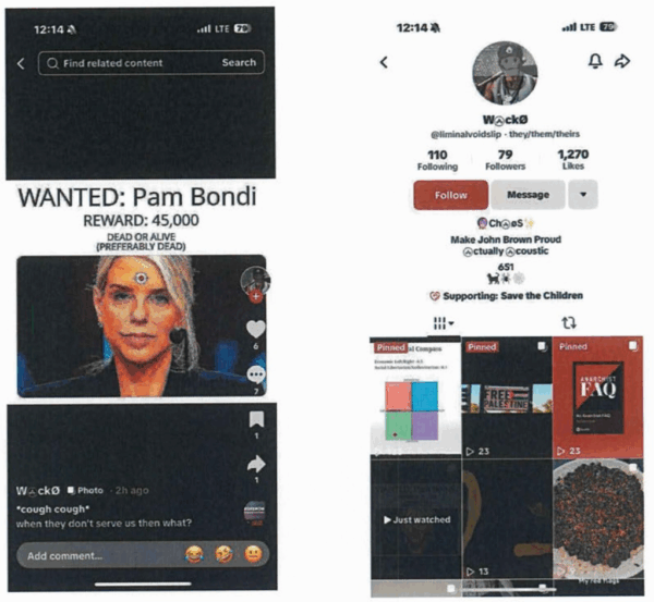 Court filings reveal Avalos used the handle “Wacko” on TikTok and had references to an “An Anarchist FAQ book” in his profile. Authorities further noted his criminal history of violence: a July 2022 felony stalking conviction in Dakota County (Minnesota), an August 2016 felony third-degree domestic battery charge in Polk County, Florida, and an April 2016 misdemeanor domestic assault in Dakota County (originally a felony domestic assault by strangulation). The affidavit describes media concerns that Avalos has “anarchist ties,” though the FBI has not publicly confirmed a full motive.